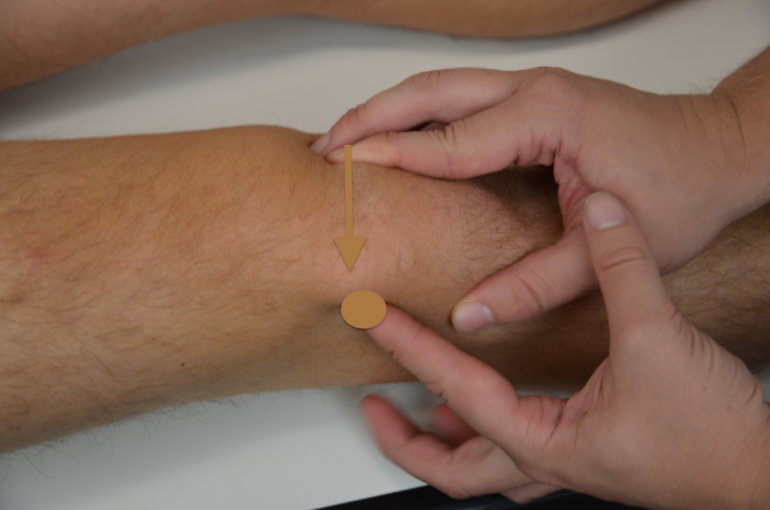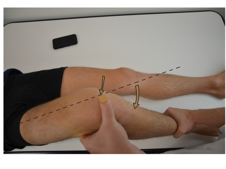 On saisit la patella en position de repos et on amène celle-ci dans une position médiale. C’est ce qu’on appelle le « glide test » ou le test de mobilité patellaire.