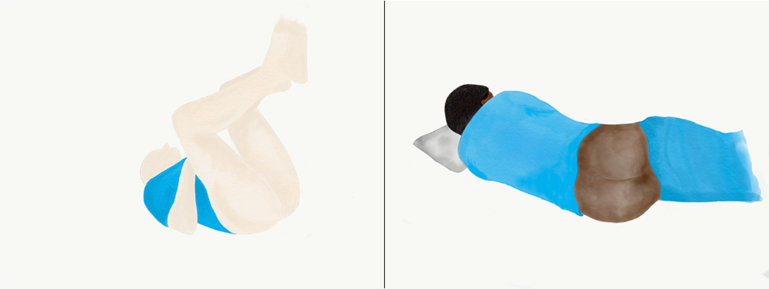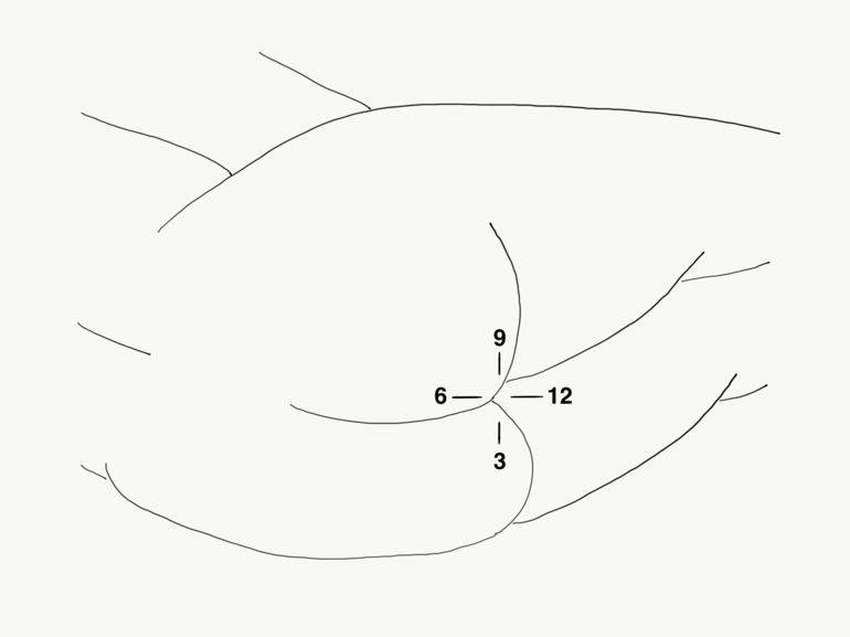 On palpe ensuite latéralement puis postérieurement en tournant le doigt à la recherche de douleurs, masses, irrégularités, fécalomes. On évalue la longueur et symétrie des sphincters.