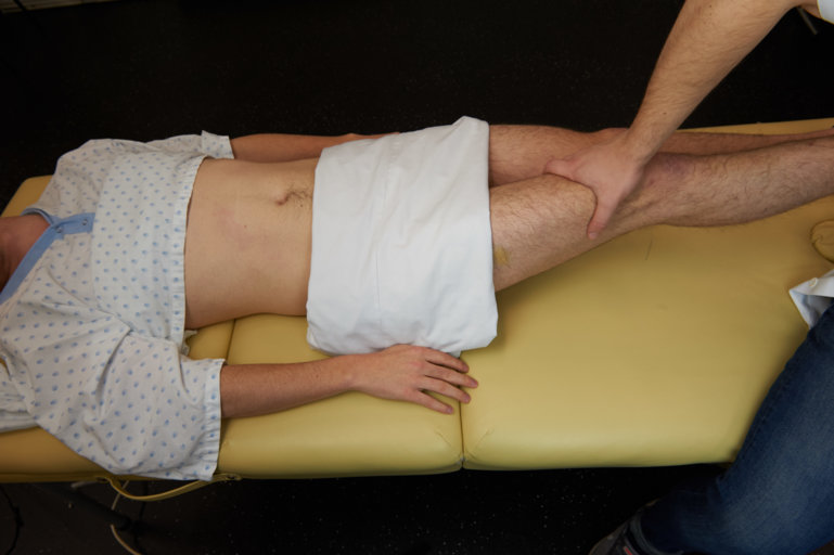 Signe de l’obturateur : cuisse droite fléchie et jambe droite fléchie, on effectue une rotation interne de la hanche. Le muscle obturateur entrera en contact avec l’appendice enflammé et provoquera une douleur. C’est le même principe pour le signe du psoas.