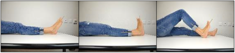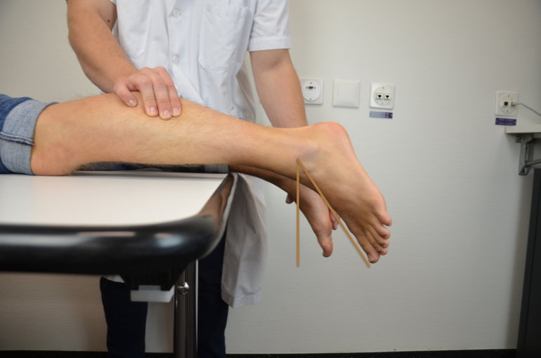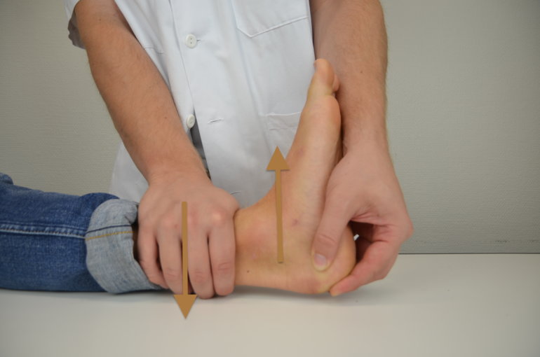 On effectue des flexions et extensions du genou tout en essayant de maintenir la dorsiflexion du pied. La dorsiflexion est maintenue lors de ces mouvements, on diminue la probabilité d’un raccourcissement des gastrocnémiens. Cependant, on remarque que la dorsiflexion est présente lors de la flexion du genou, mais a tendance à se réduire lors de l’extension du genou, on parle du signe de Silfverkiöld. On pense à un raccourcissement des gastrocnémiens. Cette atteinte se retrouve dans de nombreuses pathologies du pied, du mollet ou du rachis.