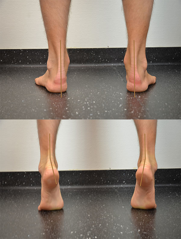 On demande au patient de se mettre sur la pointe des pieds. On observe un talon en valgus lorsque le pied est à plat et une varisation de celui-ci lorsque le patient se met sur la pointe des pieds. On pense donc une dynamique physiologique ainsi qu’une intégrité de la musculature postérieure.