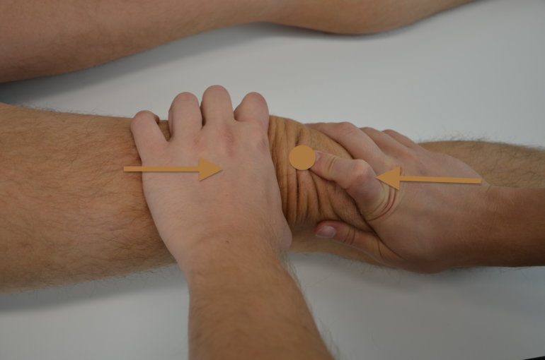 On palpe une zone douloureuse au niveau de la fibula ou du tibia, on pense à une fracture, etc.