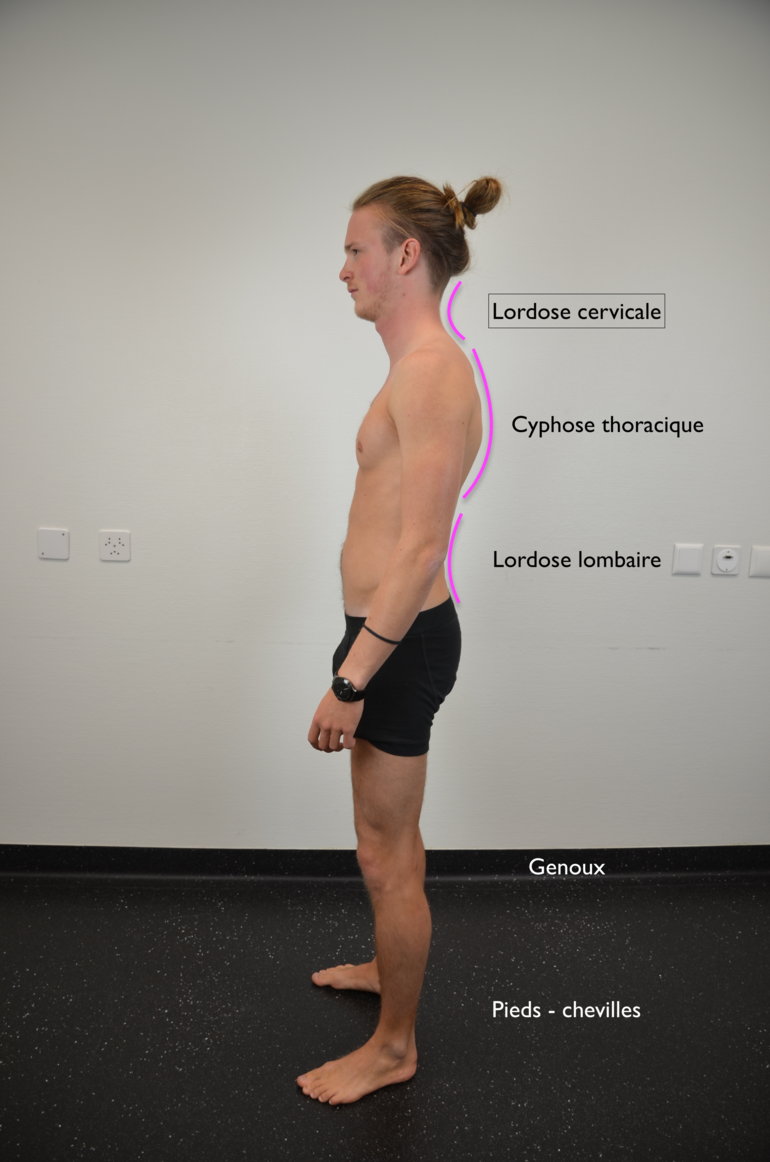 Le rachis est composé de courbes physiologiques répondant aux noms de cyphose et lordose. La cyphose est la courbure convexe de la colonne dans le plan sagittal, on la retrouve au niveau thoracique. La lordose est la courbure concave de la colonne dans le plan sagittal, on la retrouve au niveau cervical et lombaire. Ces courbures permettent d’augmenter la résistance de la colonne aux différentes contraintes qu’elle pourrait subir. Elles sont acquises avec la naissance mais peuvent changer dû au vieillissement et différentes pathologies et devenir donc pathologiques.