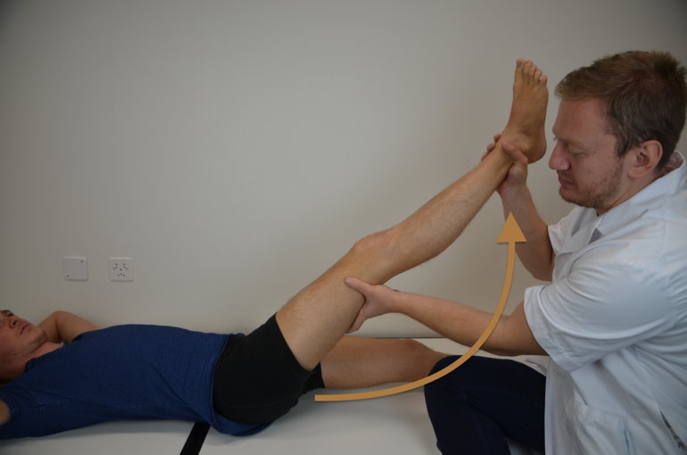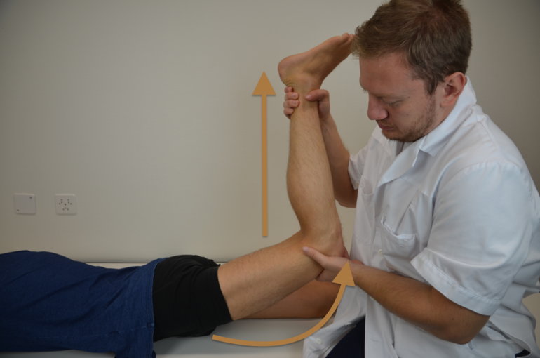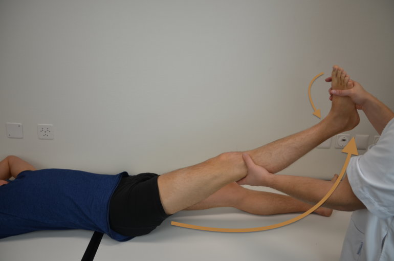 Lors de l’obtention d’un signe de Lasègue positif, on abaisse légèrement le membre inférieur et on exerce une dorsiflexion du pied.